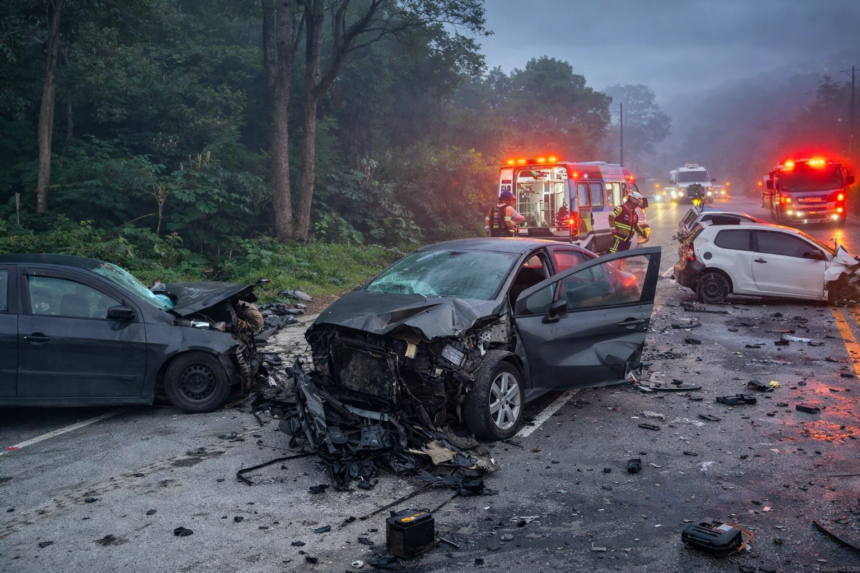 Por fim, as autoridades devem apurar as circunstâncias do acidente com cinco veículos em São Bento do Sul.