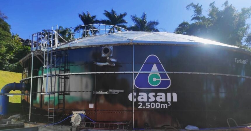 A CASAN (Companhia Catarinense de Águas e Saneamento) realiza nesta quinta-feira (21) a interligação do novo reservatório de água instalado no Bairro Janaína, em Biguaçu. A estrutura tem capacidade para armazenar 2,5 milhões de litros e contou com investimento de R$ 4,3 milhões.