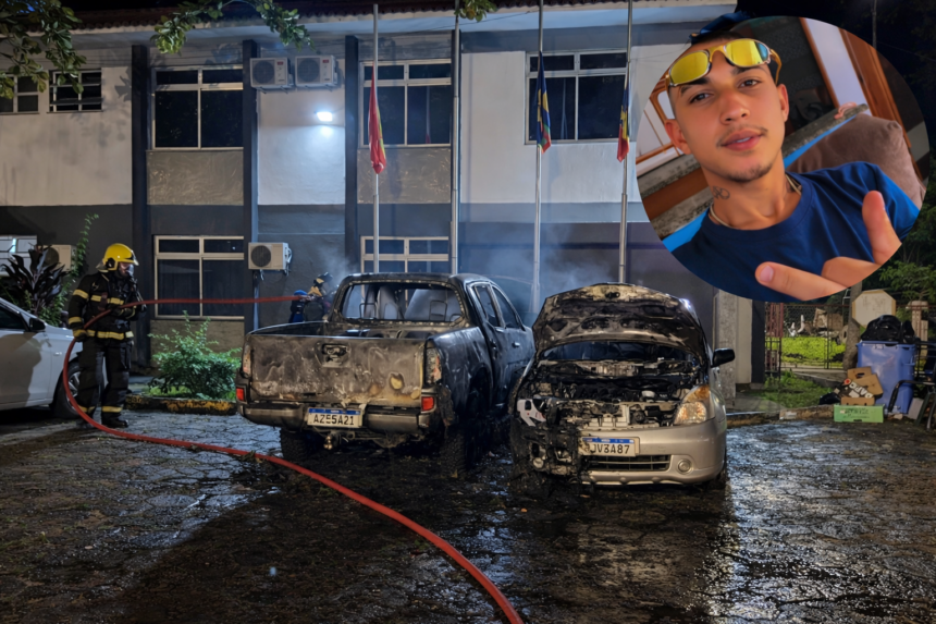 Incêndio aconteceu em frente à delegacia