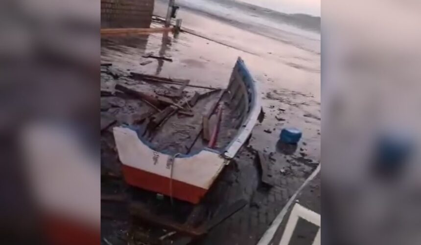 Ventos de mais de 80 km/h e ondas de 4 metros causam destruição e prejuízos para pescadores e comerciantes