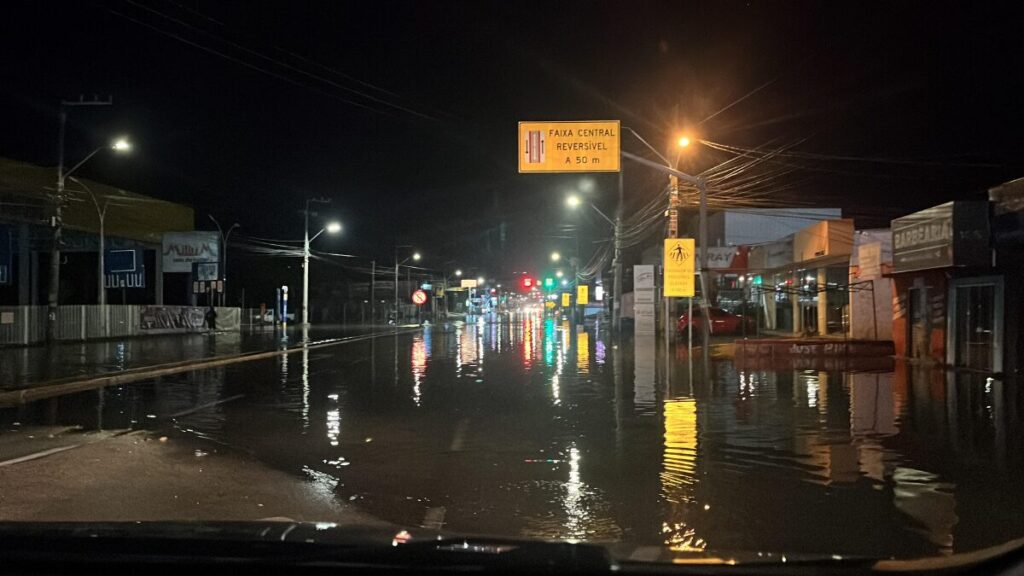 Em Florianópolis, o pico da maré atingiu 1,76 metros por volta das 4h, o maior nível registrado nos últimos seis meses. O volume de água alagou ruas e invadiu casas, provocando lentidão no trânsito em vias como a SC-405, no Sul da Ilha, e a Avenida Gustavo Richard, no Centro.