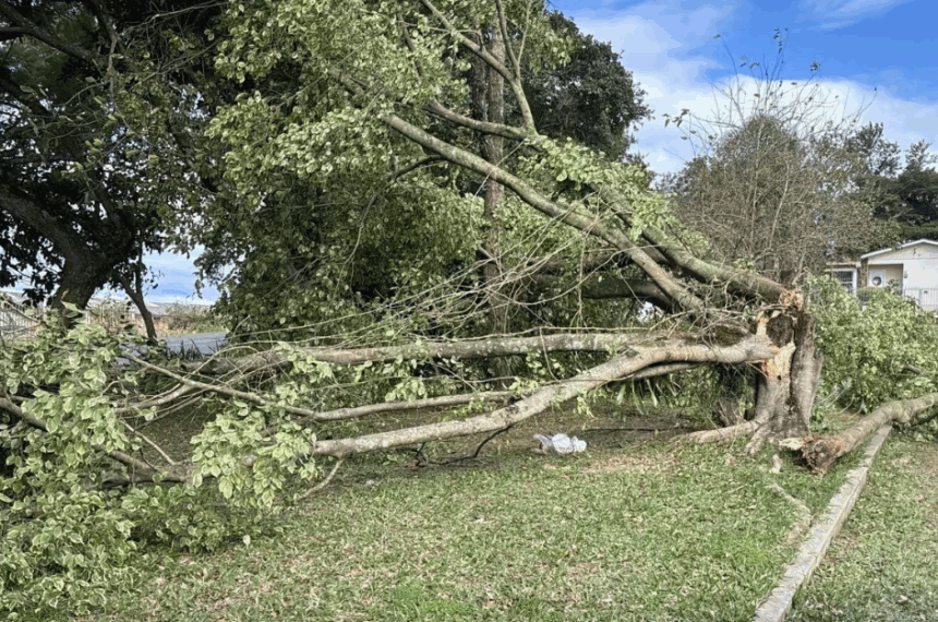 Ventos derrubam árvores, causam apagões e interditam vias