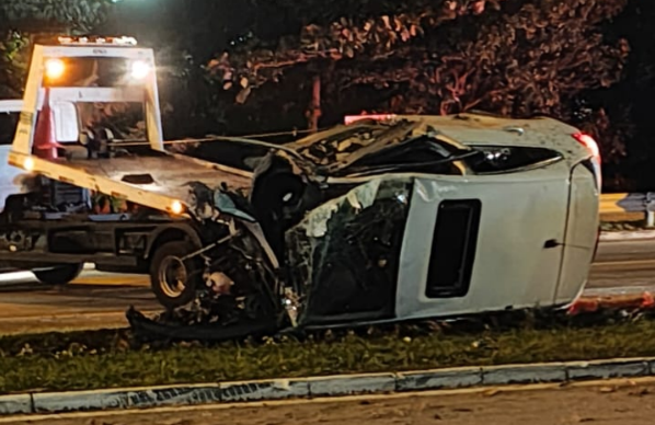 Um grave acidente na madrugada desta sexta-feira (27) voltou a evidenciar o perigo da alta velocidade em vias urbanas de Florianópolis. Por volta das 5h, um carro capotou na avenida Beira-Mar Norte, no sentido Centro, nas imediações da sede da Polícia Federal.