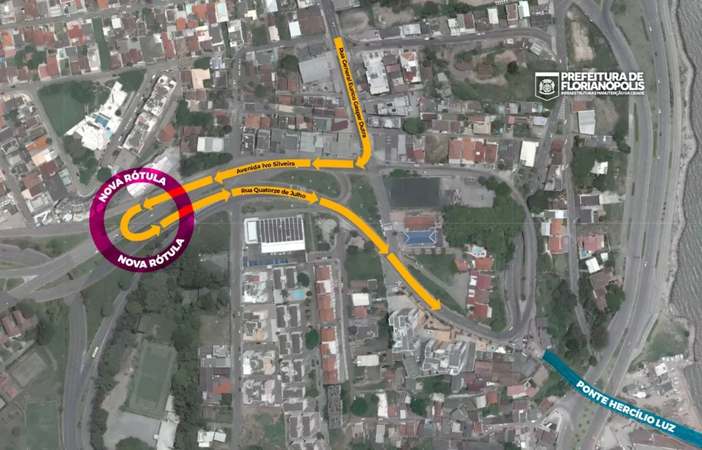 A nova rótula na Avenida Governador Ivo Silveira, em Florianópolis, teve o trânsito liberado às 8h deste sábado (2). A estrutura, implantada cerca de 300 metros à direita da Rua General Eurico Gaspar Dutra (sentido Capoeiras), muda o trajeto de quem segue em direção à ponte Hercílio Luz.