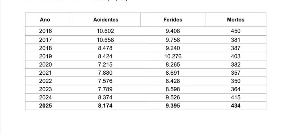 Além disso, os motociclistas representaram 31% das mortes em 2025. Para a PRF, esse cenário está diretamente ligado à rápida expansão da frota de motocicletas, impulsionada tanto pelo crescimento dos aplicativos de entrega quanto pelas deficiências do transporte público.