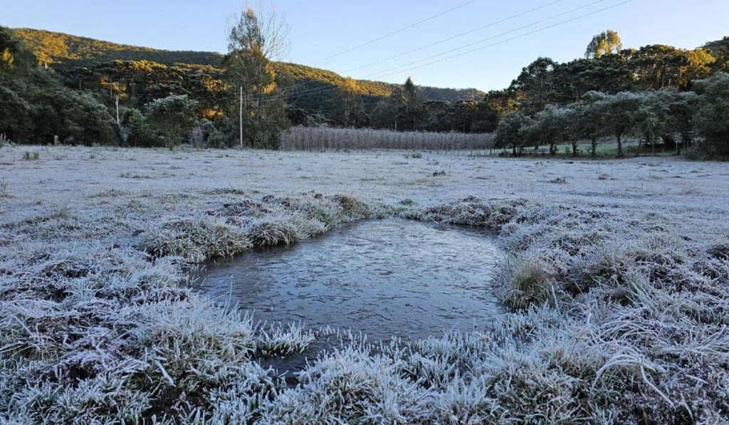 Mais uma vez, o amanhecer em Santa Catarina foi marcado por um frio intenso e paisagens cobertas por uma densa geada. Nesta quarta-feira (2), a Serra catarinense voltou a registrar temperaturas negativas severas, reforçando o rigor do inverno no estado.