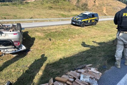 Motorista foge da PRF, capota carro e é preso com 97 kg de maconha no Contorno da BR-101