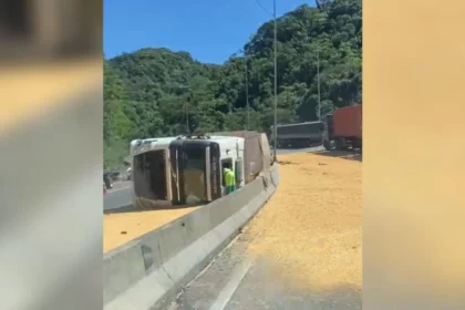 Caminhão tomba na BR-376, espalha carga e causa longas filas; motorista fica ferido
