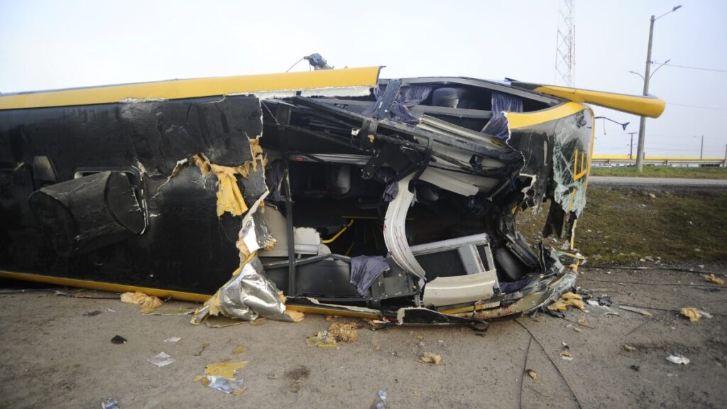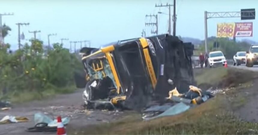 O ônibus de dois andares capotou às margens da rodovia. Passageiros relataram momentos de pânico: