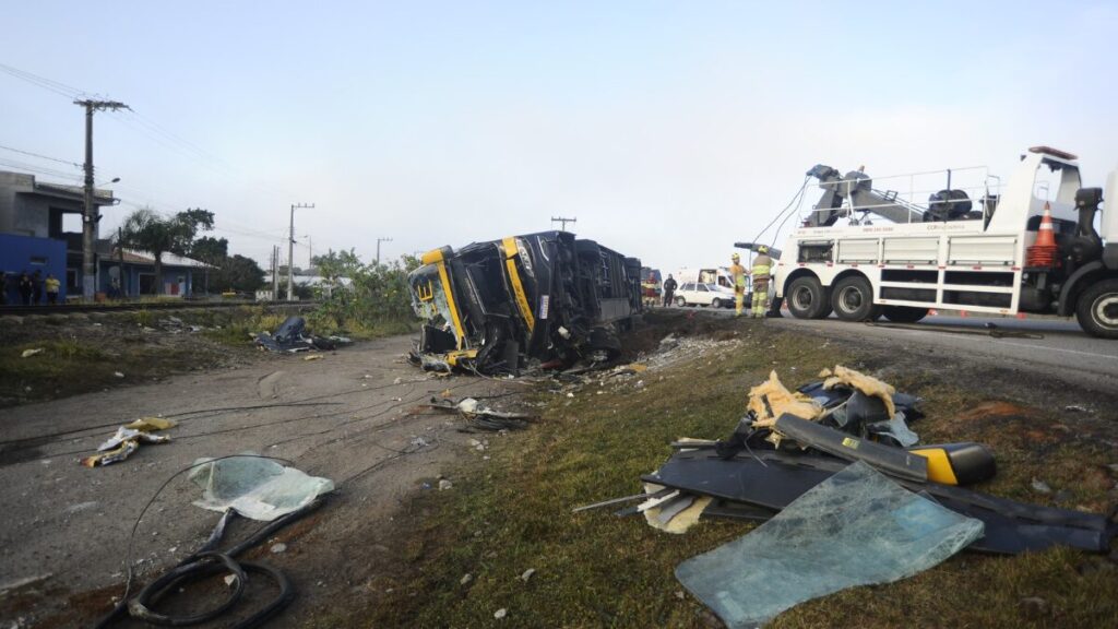 Acidente aconteceu durante a madrugada entre Imbituba e Laguna; ônibus saiu de Porto Alegre com destino a Curitiba