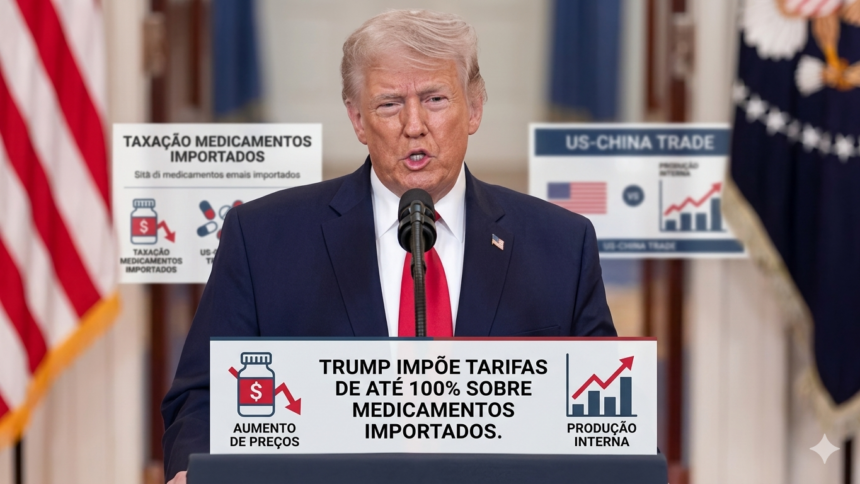 O mercado farmacêutico global sofreu um abalo sísmico nesta semana. Trump impõe tarifas de medicamentos importados com índices que chegam a 100%. Com efeito, esta medida protecionista visa priorizar a fabricação de insumos dentro dos Estados Unidos. Consequentemente, o anúncio gerou instabilidade imediata nas bolsas de valores. Por isso, laboratórios internacionais recalculam agora os custos de exportação para o mercado americano.