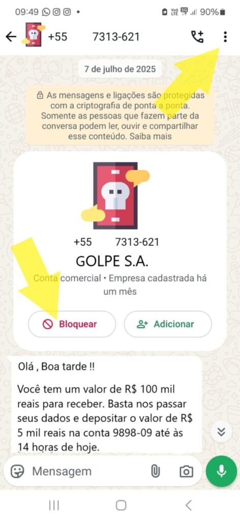- Não envie dados pessoais para supostas empresas ou bancos via WhatsApp.