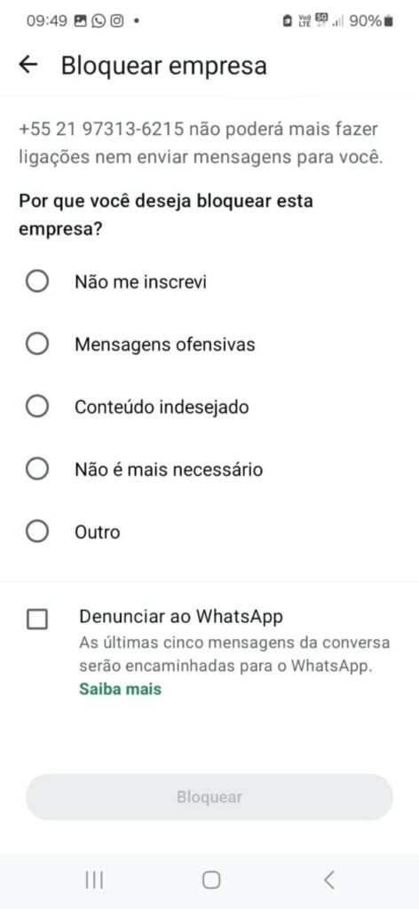 Como bloquear um número desconhecido suspeito no WhatsApp?