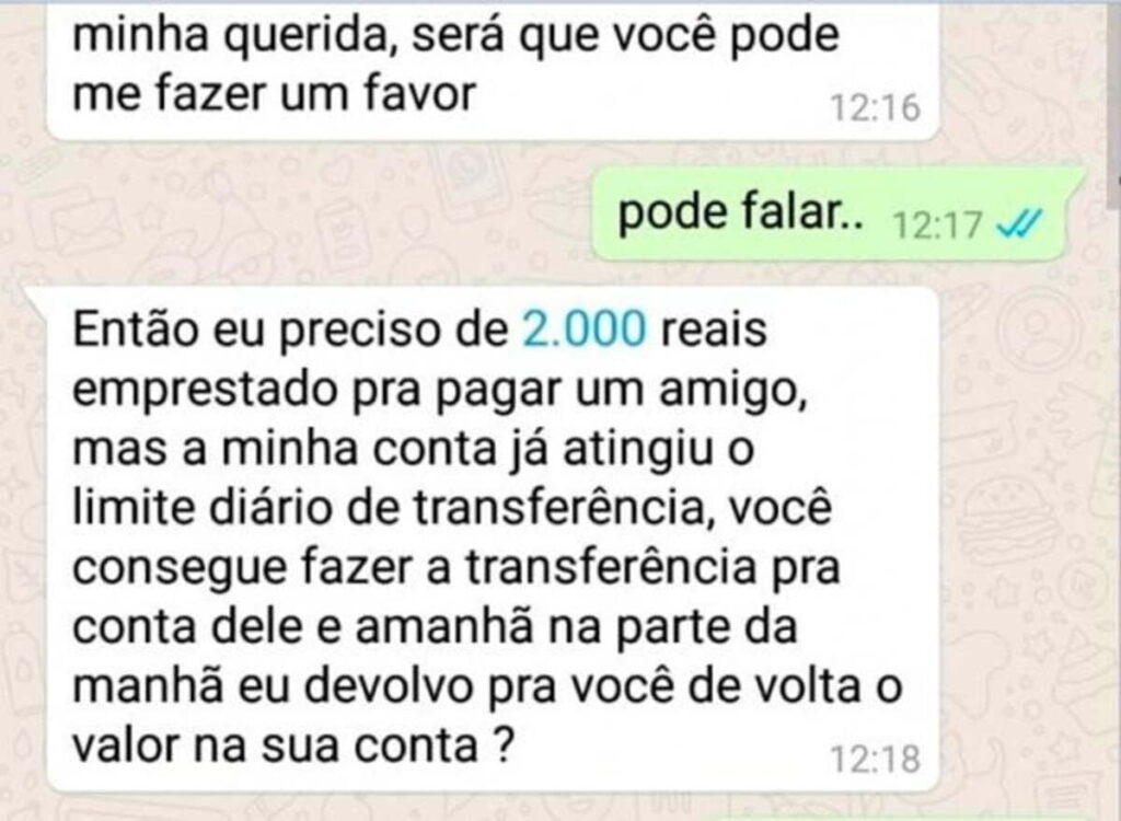 • Golpe do amigo/familiar: criminosos se passam por conhecidos pedindo dinheiro urgente.