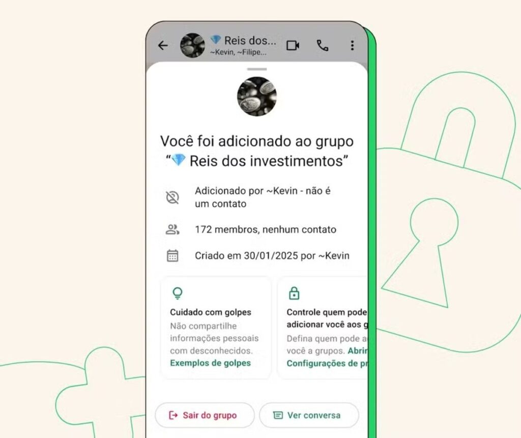 Segundo a Meta, o WhatsApp passará a exibir uma pré-visualização de segurança com informações sobre grupos ou contatos que não estão salvos na agenda do usuário.